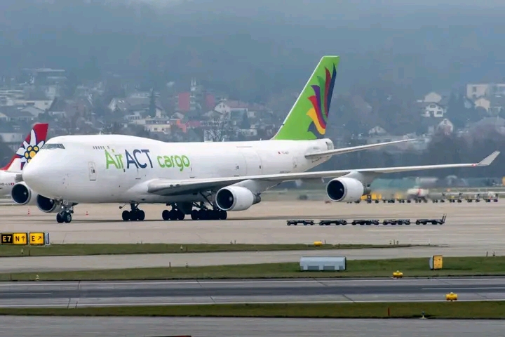 The aircraft, Boeing 747-481BDSF TC-ACF, is operated by Turkish carrier Air ACT for Emirates, built in 1993 and powered by GE CF6-80C2 engines.
