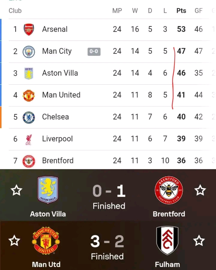 Aston Villa have successfully dropped points to Brentford, which means Arsenal are now 6 points clear on top of the table.